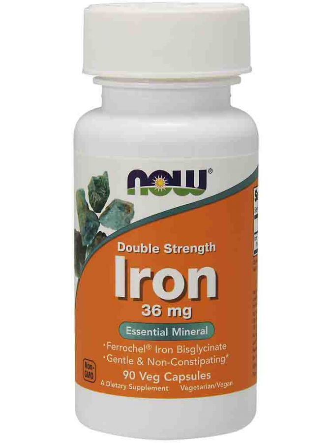 NOW Double Strength Iron содержит в два раза больше железа (36 мг на капсулу), чем наше средство с обычной дозировкой (18 мг на капсулу).